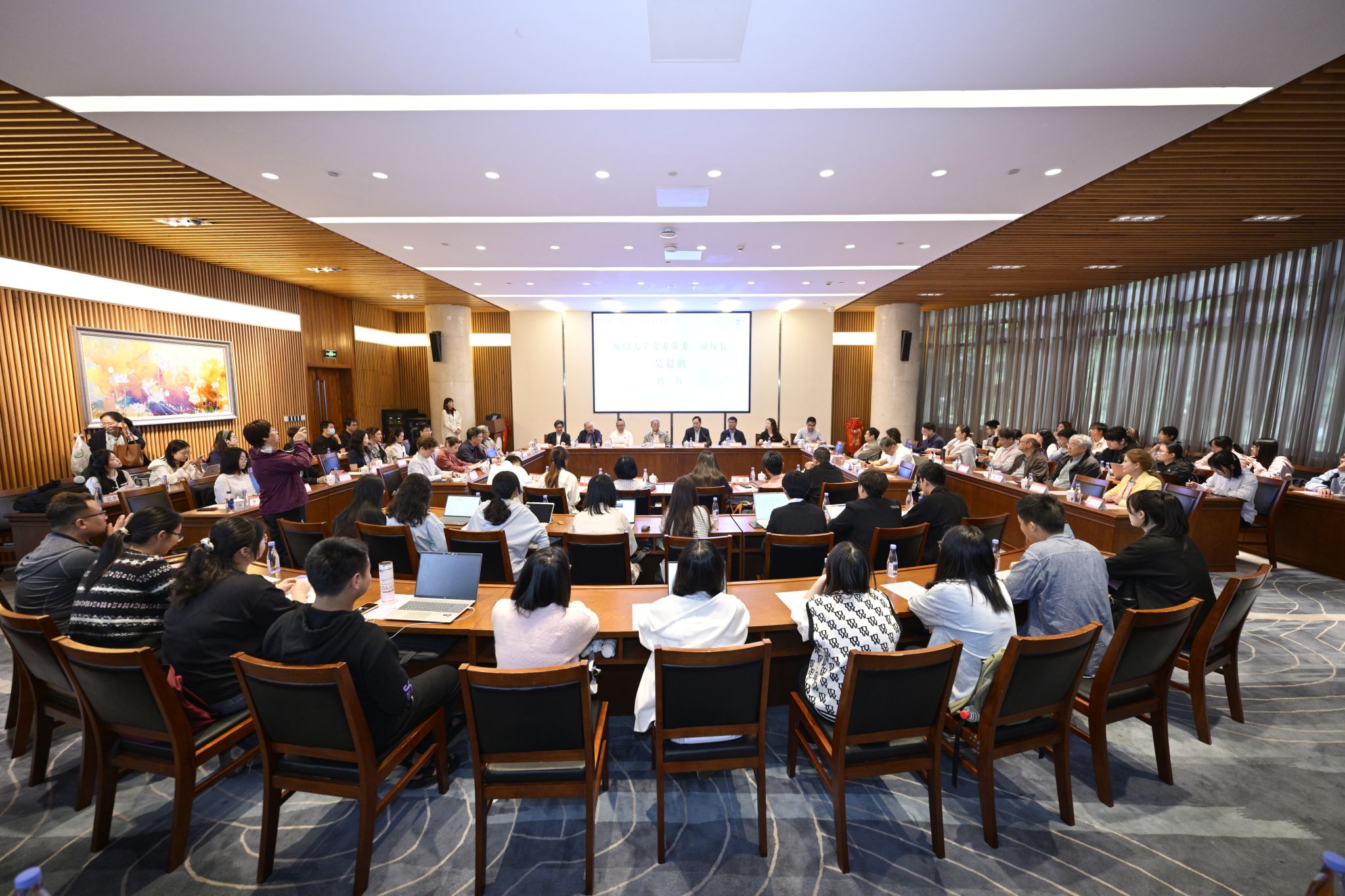 吴超鹏代表学校,表达了对各位嘉宾的热烈欢迎、对王蒙先生的崇高敬意。他向师生们介绍了王蒙先生在文学文化方面的卓越成就,并指出,王蒙是当代不多见的、全方位的大家,是与共和国共同成长的文坛巨匠。他同时向各位嘉宾介绍了厦门大学绵延不绝、历久弥新的深长文脉,并希望各位师生能以此为契机,与王蒙先生及各位中外文学名家持续深入交流,焕发南强百年文脉的时代光彩、共同续写人文精神的崭新篇章。