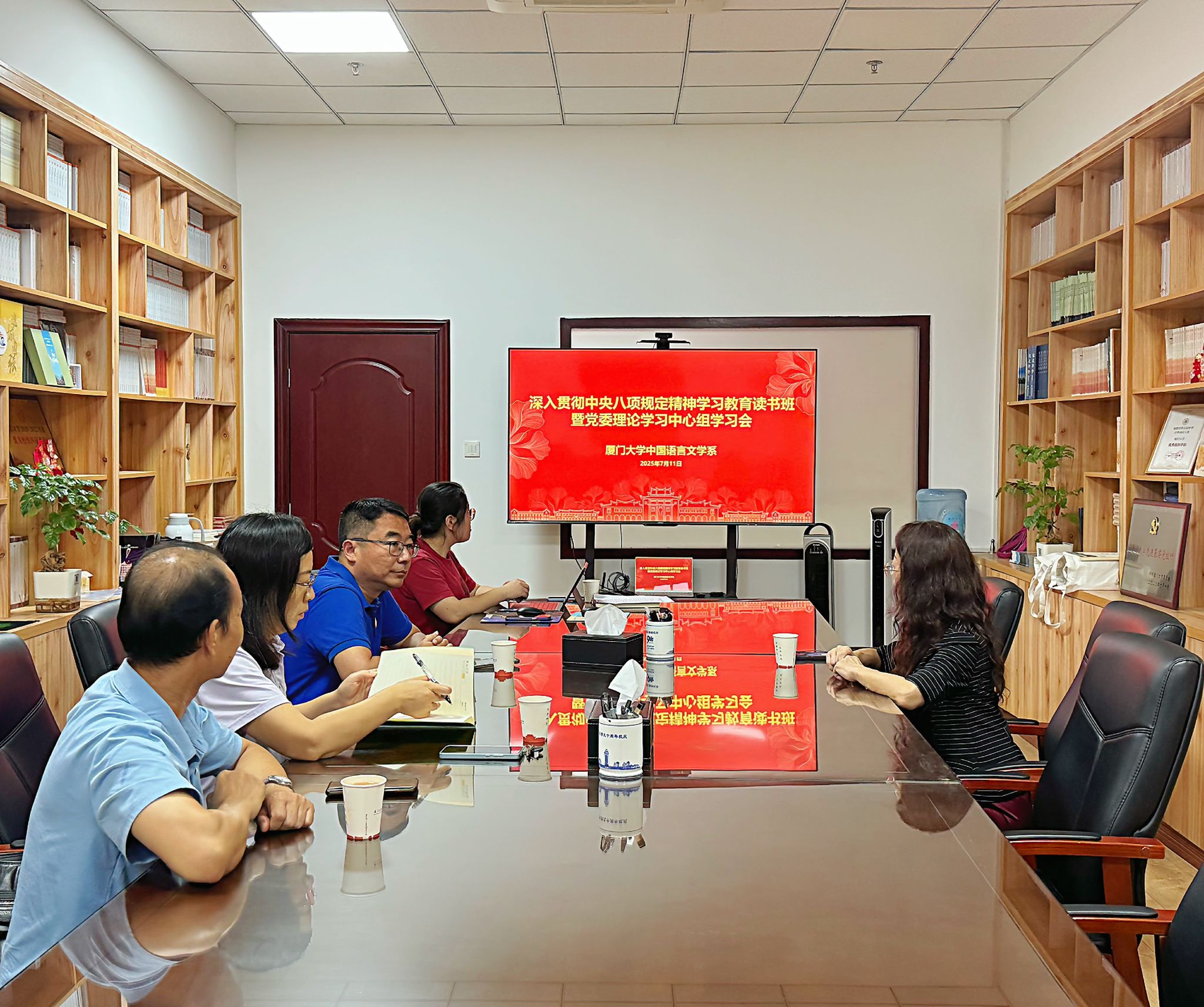 2025年7月11日上午,中国语言文学系党委深入贯彻中央八项规定精神学习教育读书班暨党委理论学习中心组学习会在建南303会议室举行。会议学习了习近平总书记在二十届中共中央政治局第二十一次集体学习时的重要讲话,针对近期违反中央八项规定精神的典型案例进行研讨反思,深化警示教育。会议由系党委书记黄宇霞主持。