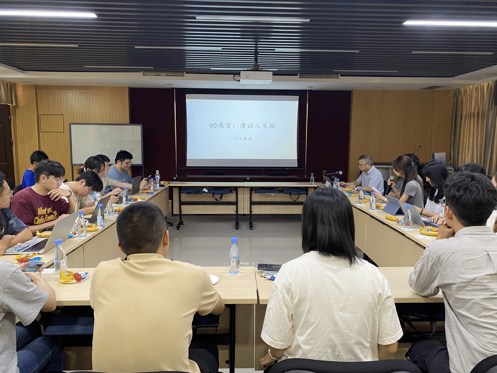 9月22日下午,中国语言文学系第二期“师生零距离”活动在联兴楼310会议室顺利举行。代迅教授应邀出席并围绕“美学与人生——在文学与艺术之间徜徉”这一主题,与在场师生展开座谈,分享他求学治学、投身教育的丰富经历与心路历程。系党委副书记蔡虎堂、辅导员李莹斌及本硕博各专业近30名学生共同参加。