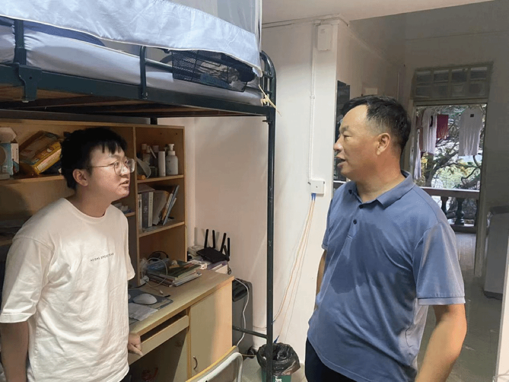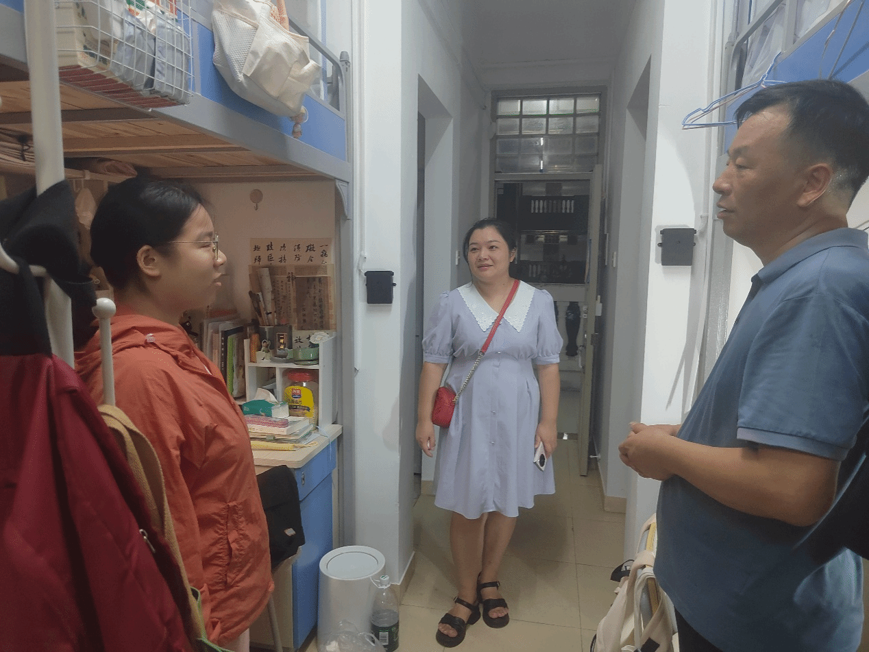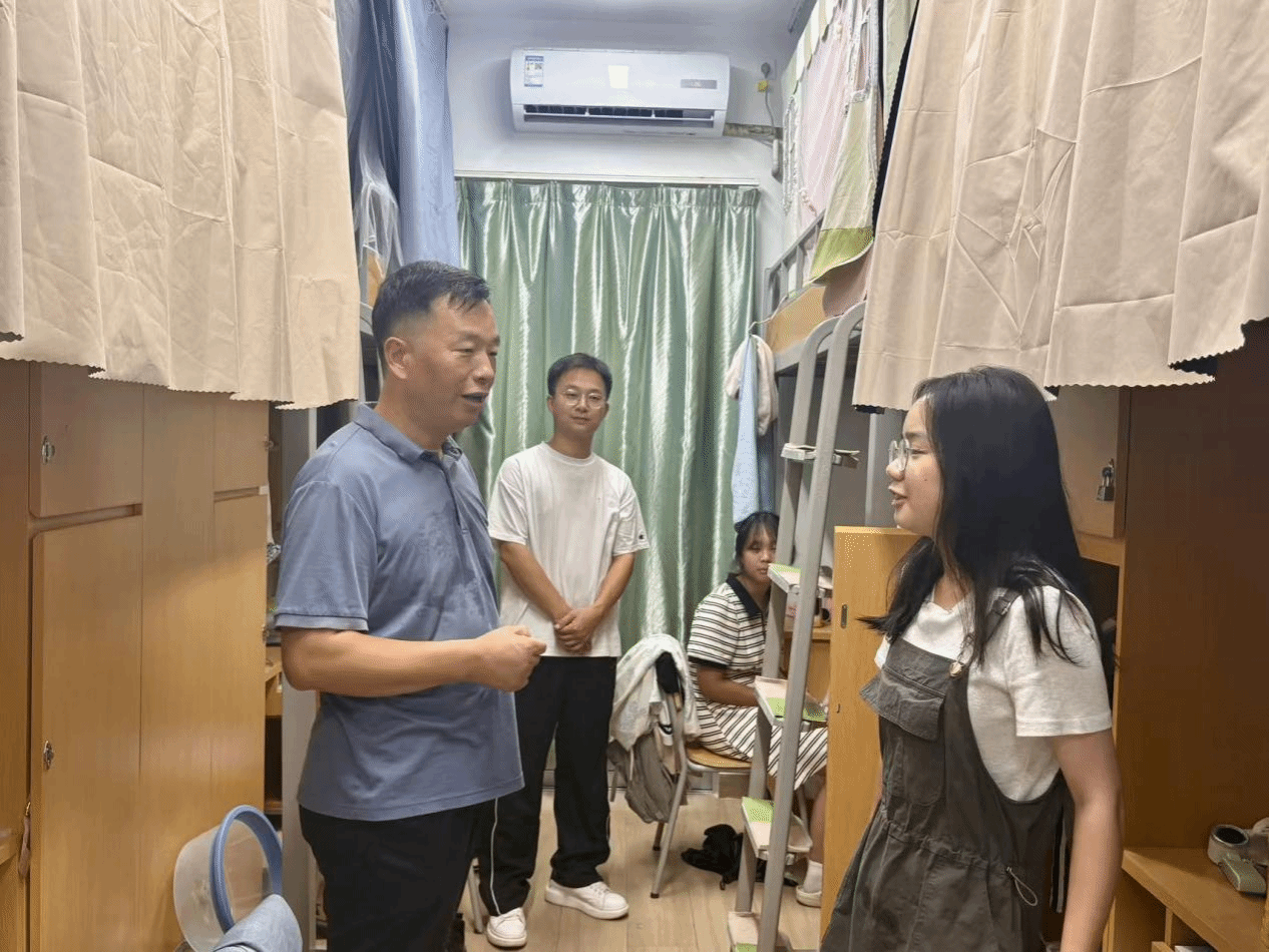 随后,工作组深入学生宿舍,与同学们面对面沟通,详细了解假期学习计划与生活安排。“假期有出行计划吗?”“生活上有没有需要协助的地方?”“新生们还适应大学节奏吗?” 一句句关切的询问,迅速拉近了师生距离,让宿舍内充满暖意。