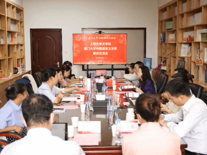 10月22日上午,上海大学文学院党委书记陆甦颖,党委副书记、副院长丁佳蒙,部分青年教师及党政人员一行到访厦门大学中文系,就中文系拔尖学生培养等工作的经验与特色做法展开深入交流。中文系党委书记黄宇霞、党委副书记蔡虎堂、本科生拔尖班班主任刘子立、部分党政人员参与会议。