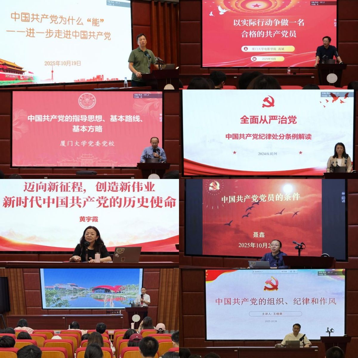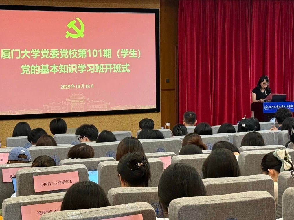 10月18日至10月31日,由中国语言文学系、历史与文化遗产学院、哲学系、电影学院联合承办的厦门大学党委党校第101期(学生)党的基本知识学习班顺利举办。54名学员经过9场专题党课学习、2次小组讨论提升和在线考试测评,圆满完成学习任务并顺利结业。