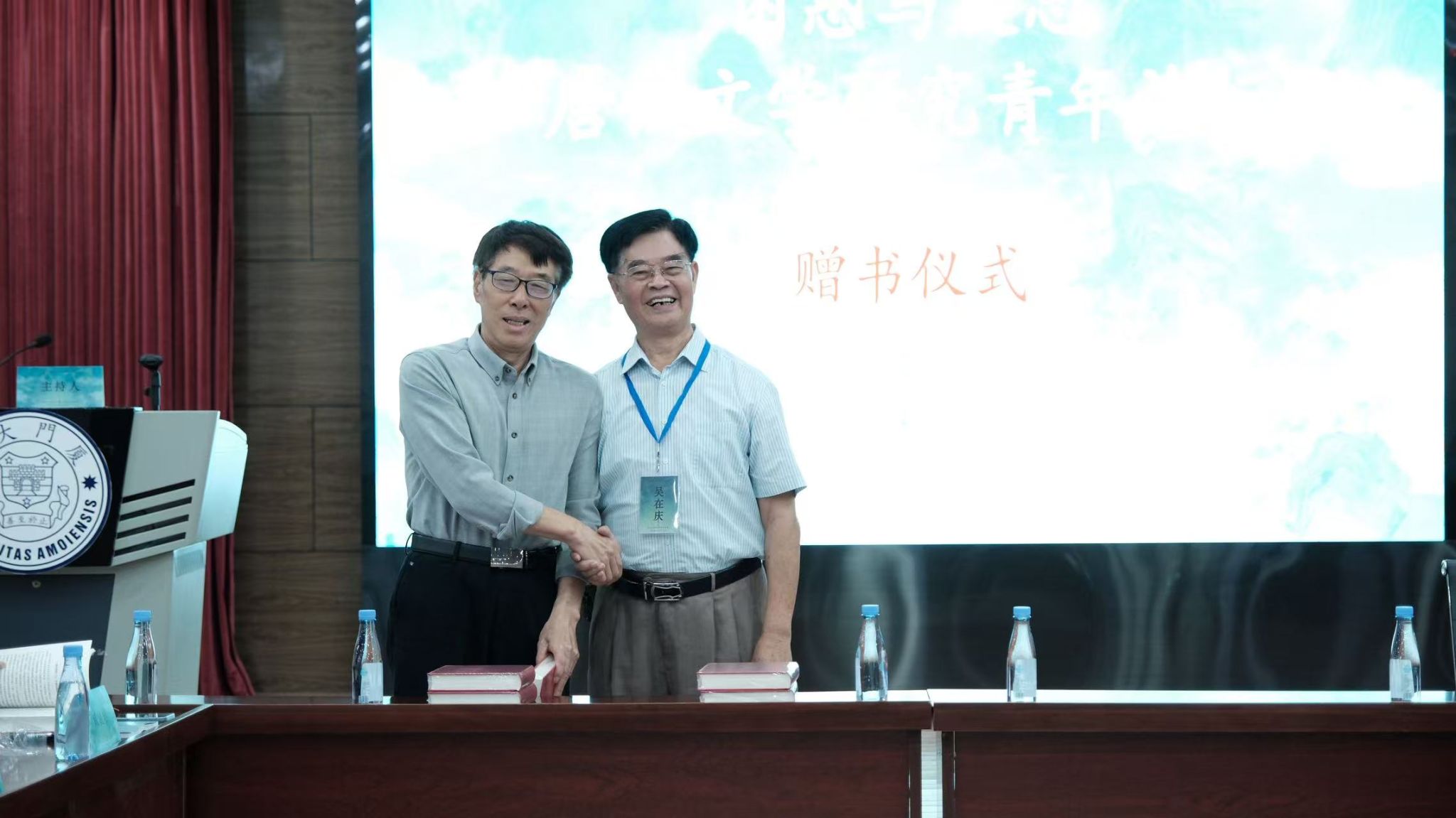开幕式结束后,论坛进行第一场专题议程——吴在庆先生八秩问学座谈会。吴在庆是唐代文学研究的大家,也是厦门大学古典文学研究的旗帜,著作等身,嘉惠学林。会上吴在庆向参会代表赠送了新书《唐代文史考论与解读丛稿:八秩自纂集》,与会学者纷纷回顾与吴在庆的交游经历及研读吴在庆著作的感受,感佩前辈学者在治学道路上对青年学人的激励与鼓舞。