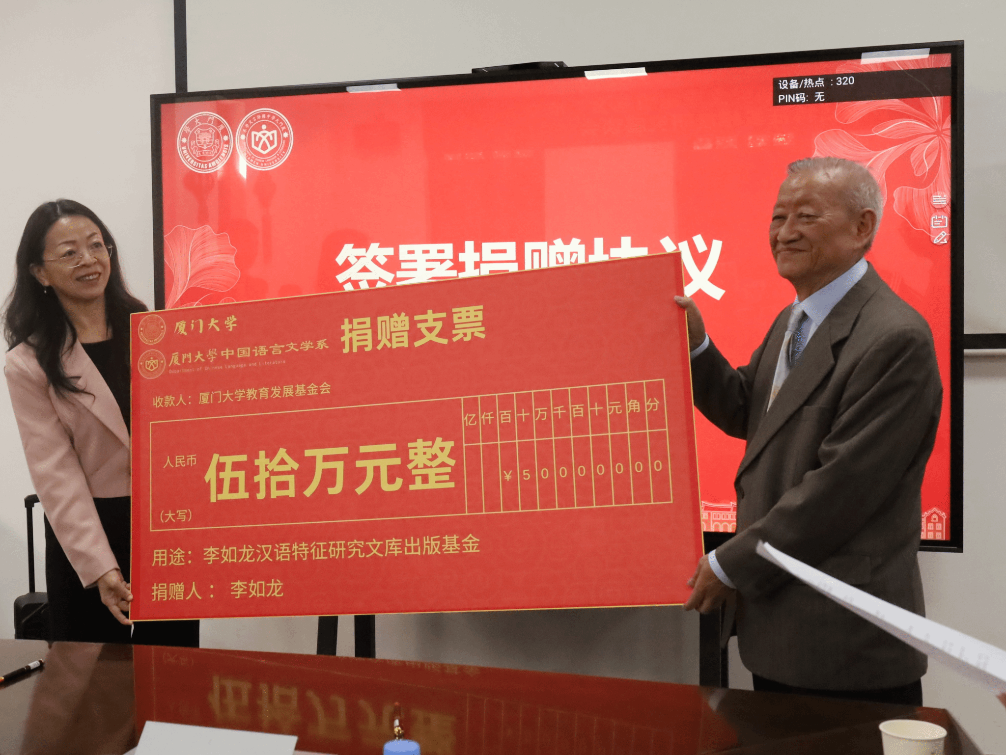 李如龙在会上表示,汉语特征是一个内涵丰富的研究领域,此次捐赠旨在"投石问路",希望凝聚学界力量共同深耕这一重要方向。未来,厦门大学将联合各方力量,稳步推进基金相关工作,通过系统化的学术规划和国际化的传播策略,让这份学术薪火持续传递,为构建中国特色语言学体系贡献力量。
