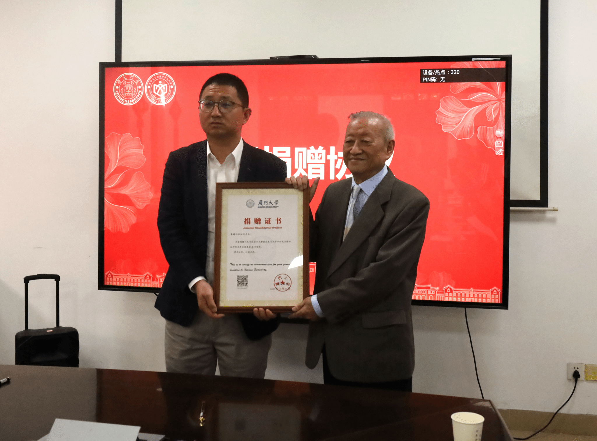 会上,黄宇霞与李如龙签署捐赠协议,徐勇为李如龙颁发捐赠证书。