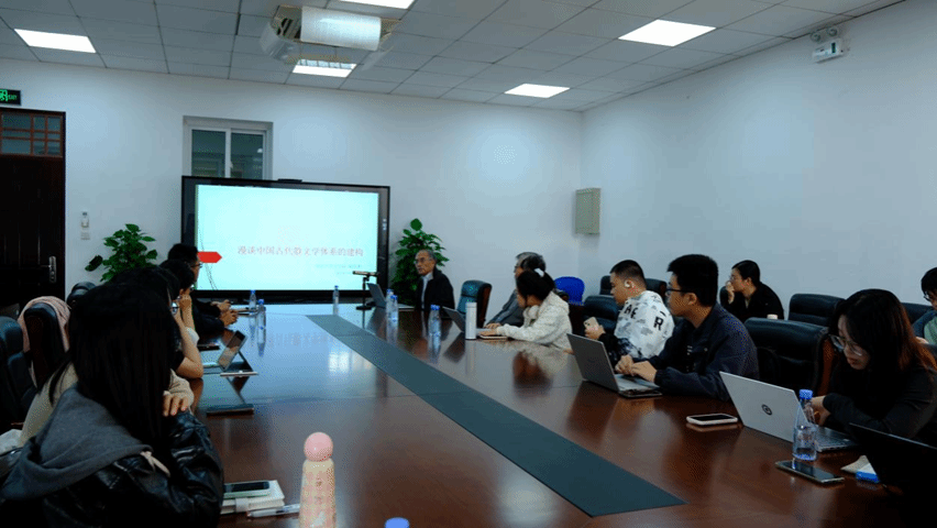 11月22日下午,中国语言文学系在南光一317会议室成功举办了两场学术讲座。此次讲座邀请了原北京师范大学文学院教授、现任河北大学文学院教授郭英德先生和张德建先生担任主讲嘉宾,由中文系洪迎华副教授主持,龙成松副教授、李盛尧助理教授及部分本硕博学生共同参与。