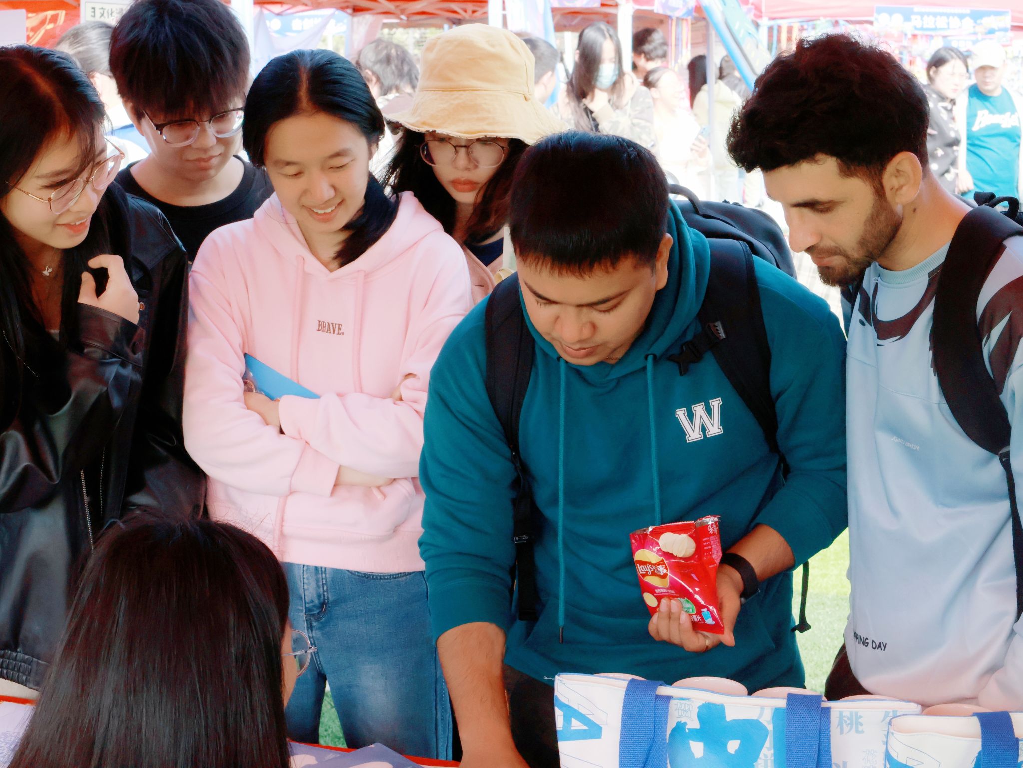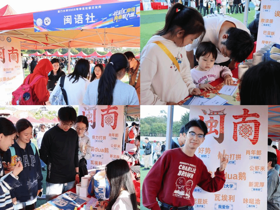 作为全国985高校中唯一的闽南语文化类社团,闽语社在文化节现场吸引了众多师生驻足交流。展位前,“哇嘎里共”“青菜啦”“哇爱哩”等闽南语日常用语互动环节,让同学们在轻松亲切的乡音中感受方言魅力,现场气氛热烈,笑语不断。