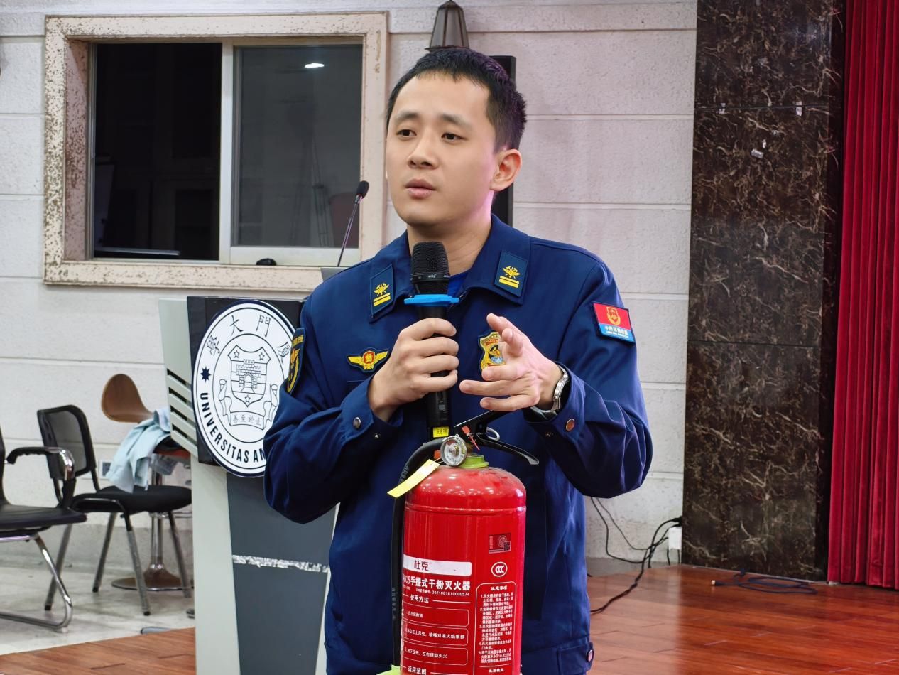 培训开始前,蔡虎堂结合近年来社会和高校火灾频发的现象,强调提高消防安全意识的急迫性和重要性,并希望师生能够通过沈耀老师的专业讲解学好消防安全知识和技能,把学到的内容切实地运用到实际生活之中。