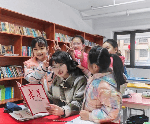 “妇好”是甲骨卜辞中所记载的商朝女将军,经郑巧燕和同学共同设计,化作卡牌上英姿飒爽的桌游角色,这个甲骨文启蒙游戏被郑巧燕带到了公益课堂中,沉寂千年的文字在小朋友们的欢声笑语中“活”了过来。
