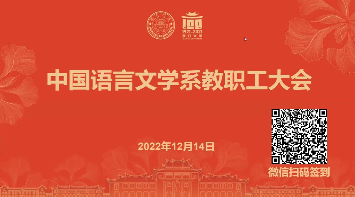 2022年12月14日下午,中国语言文学系召开全系教职工大会,受疫情影响,会议在线上举行。会议由系党委书记高忠华主持,系党政领导班子成员、在职教师、博士后、党政管理人员参加会议。